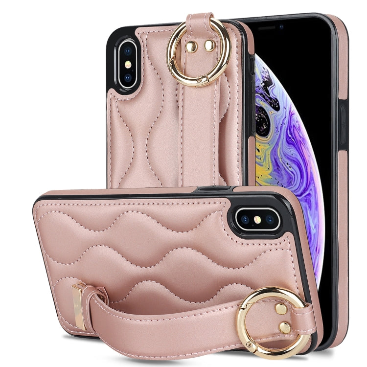 Funda para iPhone Xs / X Antideslizante con Anillo Cobertura Completa PU con Muñequera (Oro Rosa)