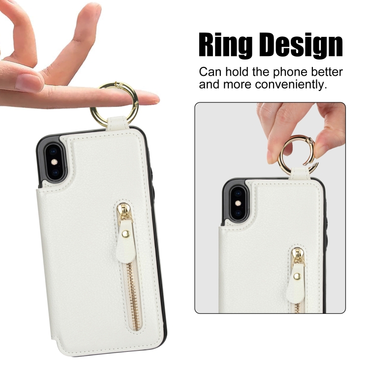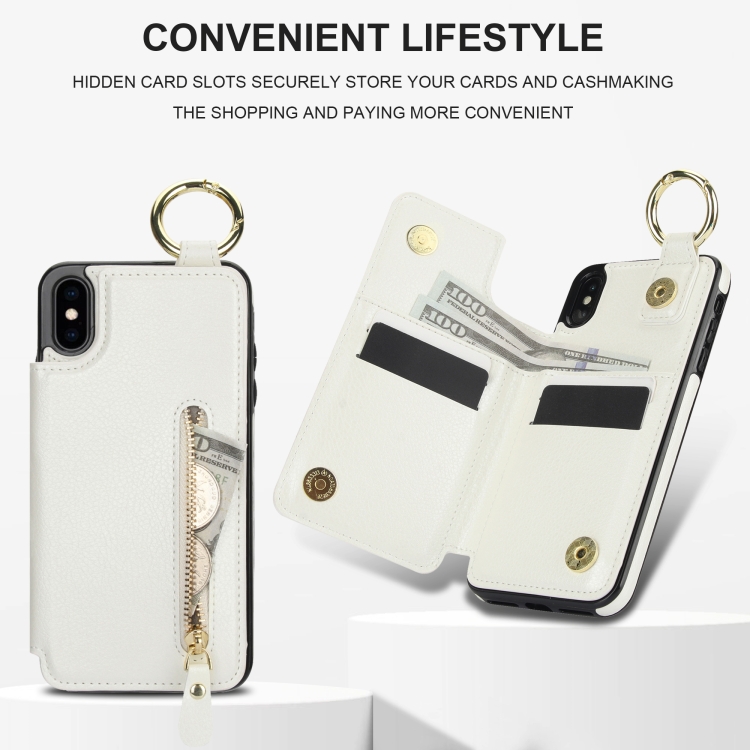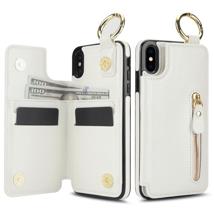 Funda para Teléfono iPhone Xs X Bolsa para Tarjetas Doble Hebilla Cremallera Textura Litchi (Blanco)