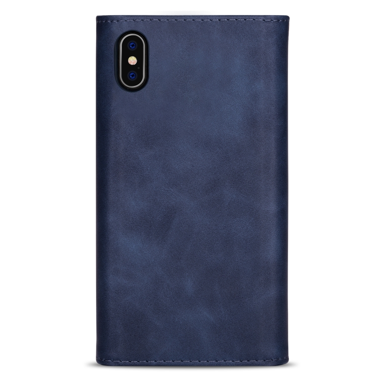 Funda de Cuero para iPhone Xs / X Skin Feel con Tapa Horizontal Soporte Ranuras Tarjetas Marco Fotos Cordón (Azul)