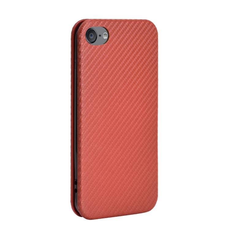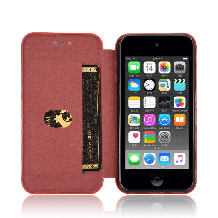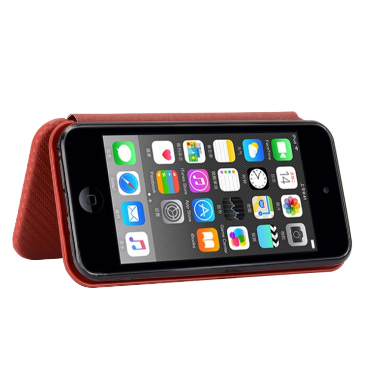 Funda para iPod Touch 5/6/7 Textura Fibra de Carbono Flip Horizontal Magnético TPU PC Cuero PU con Ranura para Tarjeta (Marrón)