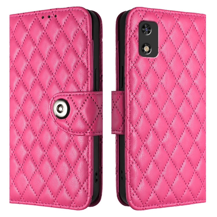 Funda para Itel A23 Pro y A17 de Cuero con Tapa Textura Rómbica y Cordón (Rojo Rosa)