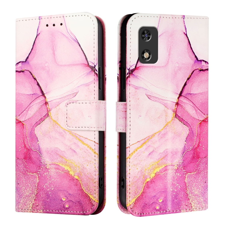 Funda para Teléfono Itel A23 Pro / A17 Pt003 de Cuero con Tapa y Patrón de Mármol (Rosa, Morado y Dorado)