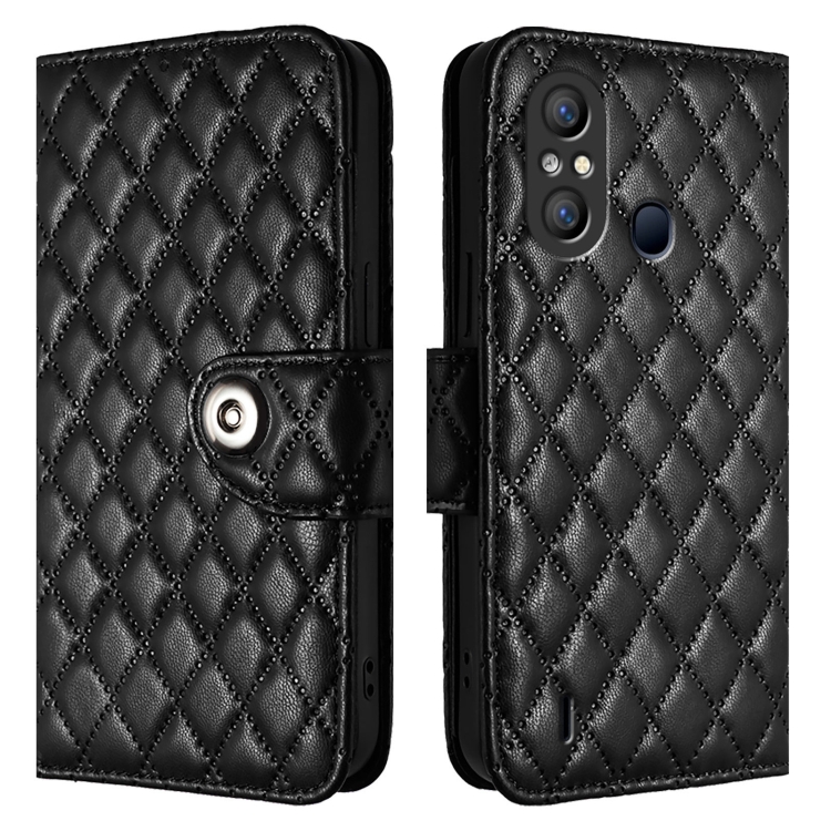 Funda para Teléfono Itel A58 A49 con Tapa de Cuero Textura Rómbica y Cordón (Negro)