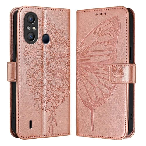 Funda para Teléfono Itel A58 / A49 Cuero con Mariposa en Relieve (Oro Rosa)