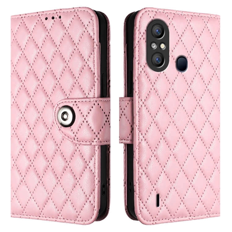 Funda para Itel A58 y A49 de Cuero con Tapa Textura Romboidal y Cordón (Rosa)