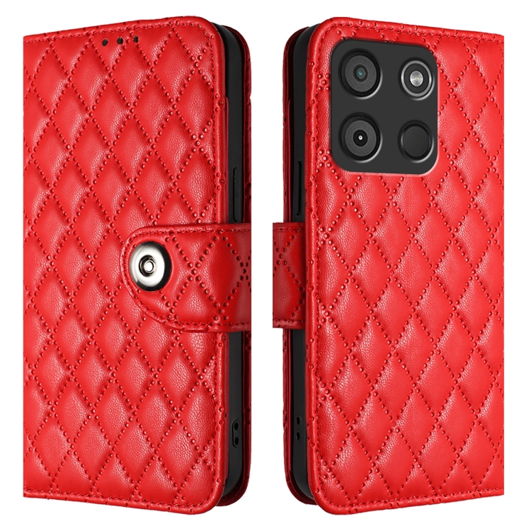 Funda para Itel A60 / A60S de Cuero con Tapa, Textura Rómbica y Cordón (Rojo)