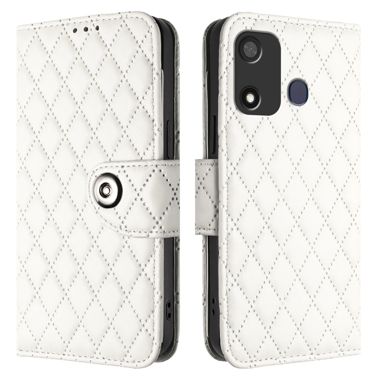 Funda para Teléfono Itel P17 / A27 de Cuero con Tapa, Textura Rómbica y Cordón (Blanco)