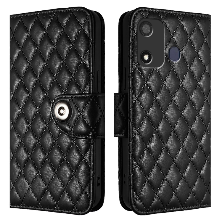 Funda para Teléfono Itel P17 / A27 de Cuero con Tapa Textura Rómbica y Cordón (Negro)