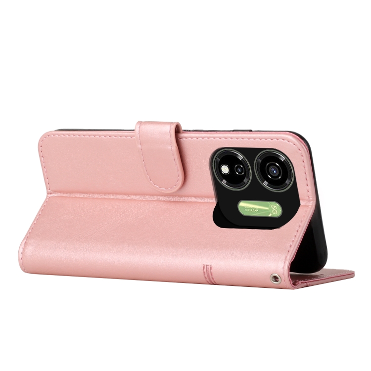 Funda para Itel P55 5G de Cuero con Hebilla y Textura de Becerro con Costura (Rosa)