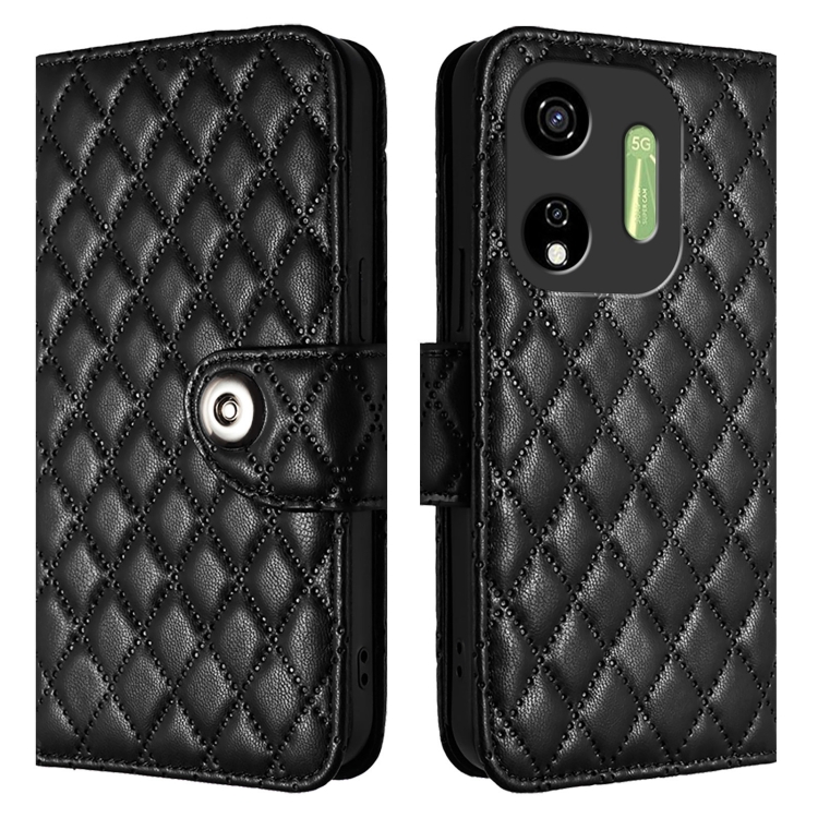 Funda para Itel P55 5G de Cuero con Tapa, Textura Romboidal y Cordón (Negro)
