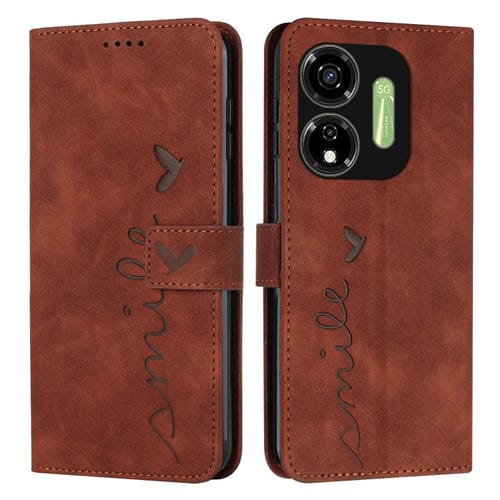 Funda para Teléfono Itel P55 5G Skin Feel Heart de Cuero en Relieve con Cordón Largo (Marrón)