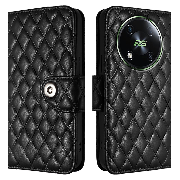 Funda para Itel Rs4 S666Ln con Tapa de Cuero Textura Romboidal y Cordón (Negro)