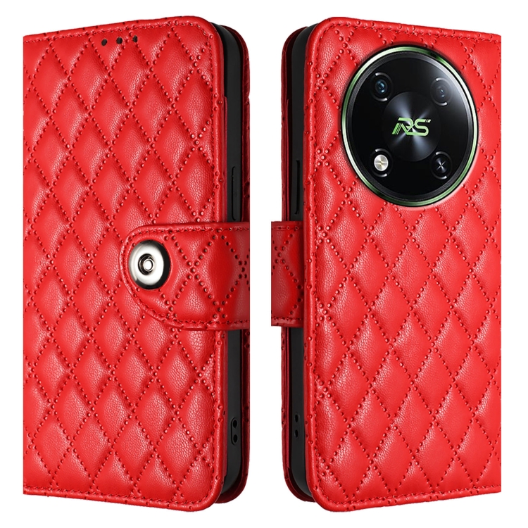 Funda para Teléfono Itel Rs4 S666Ln Cuero con Tapa Textura Romboidal y Cordón (Rojo)