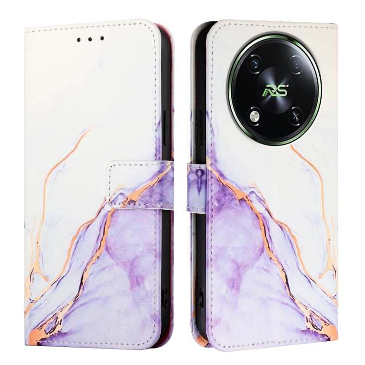 Funda para Teléfono Itel Rs4 S666Ln Pt003 Cuero con Tapa y Patrón de Mármol (Blanco y Morado)