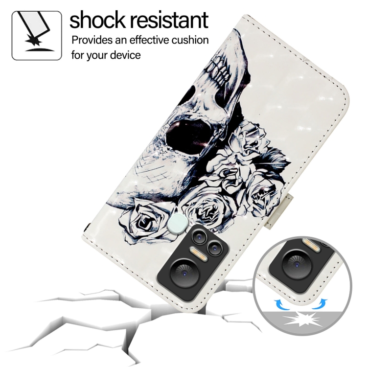 Funda para Itel S18 y Vision 5 de Cuero con Tapa Horizontal y Pintura 3D (Calavera)