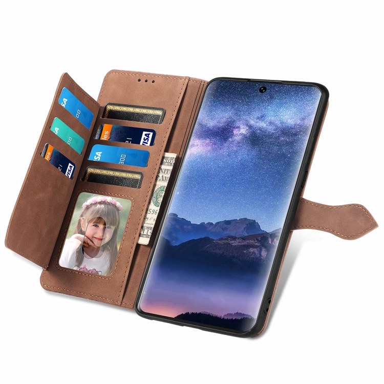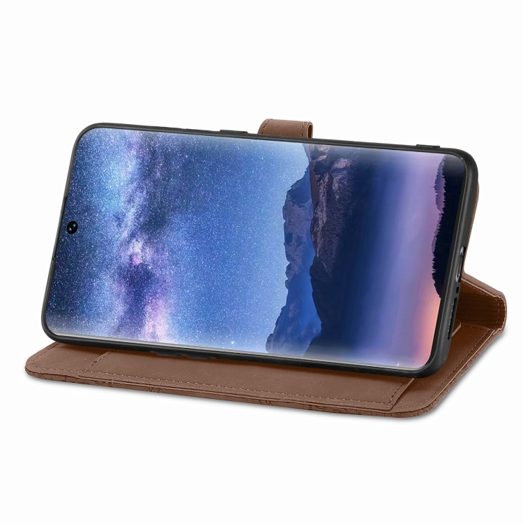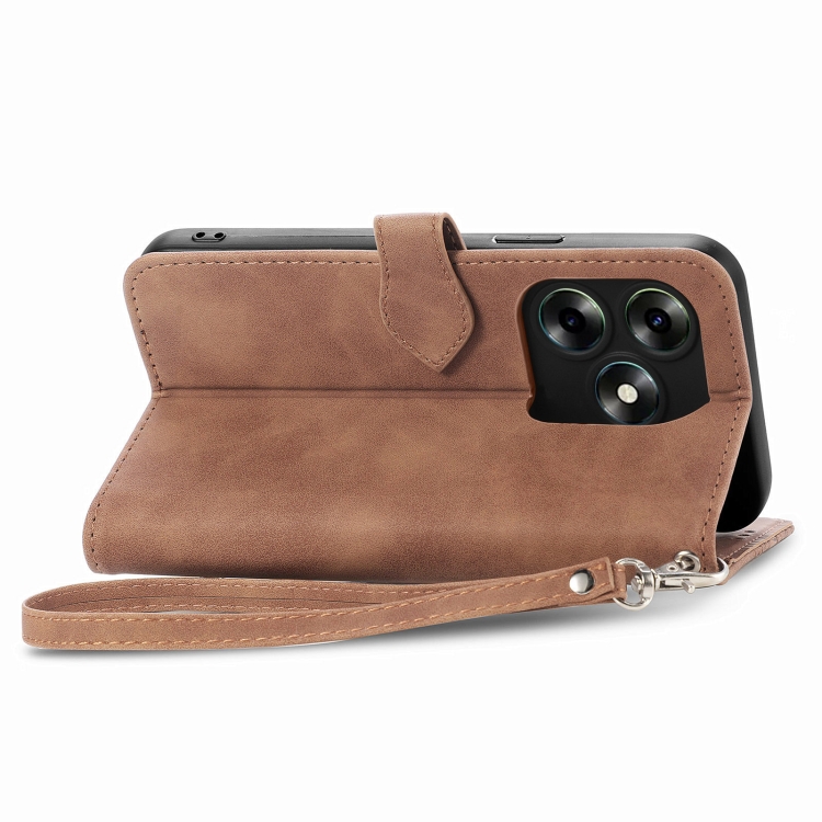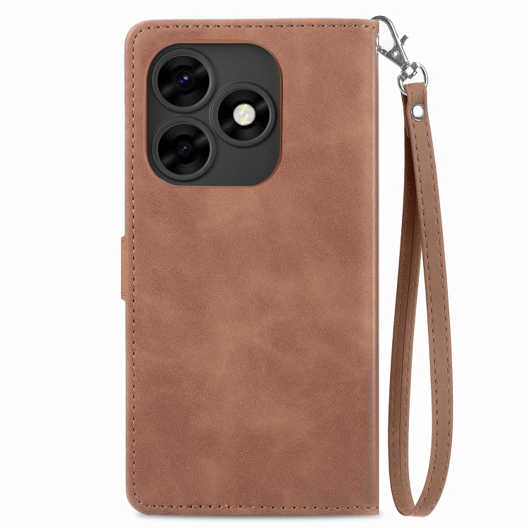 Funda de Cuero con Cremallera y Flores para Itel S23 (Marrón)