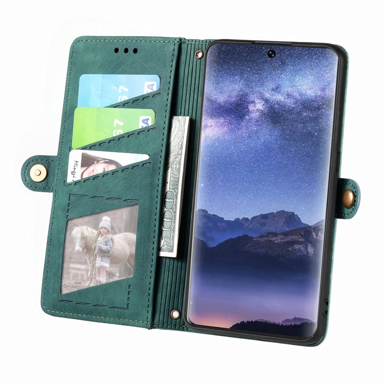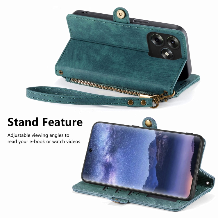Funda de Cuero para Itel S23 con Hebilla Lateral y Billetera con Cremallera Geométrica (Verde)