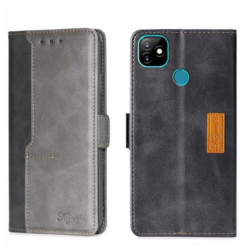 Caja de Teléfono de Cuero para Itel Vision 1 con Hebilla Lateral y Contraste (Negro + Gris)