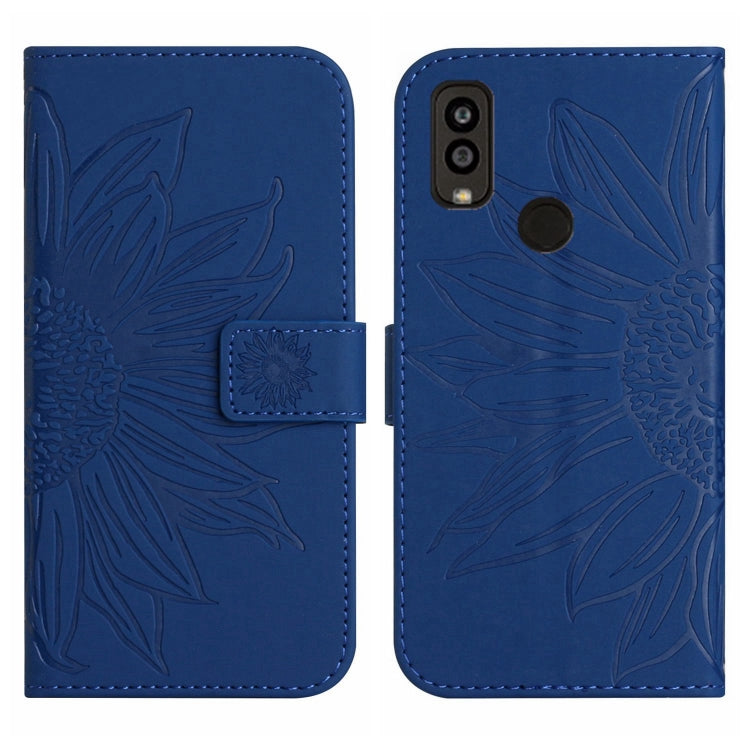 Funda Flip de Cuero Kyocera Android One S9 Skin Feel con Cordón y Diseño Sun Flower (Azul Oscuro)