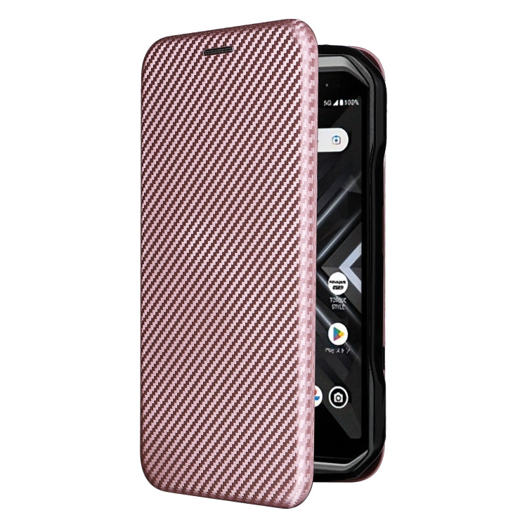 Funda de Cuero para Kyocera Torque G06 Kyg03 con Tapa y Textura de Fibra de Carbono (Rosa)
