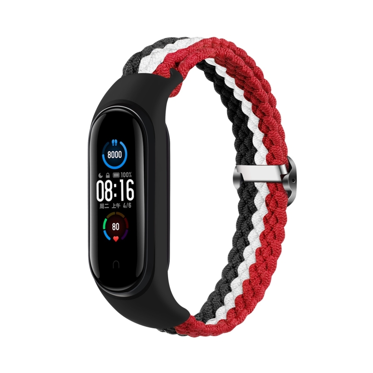 Para la banda de reloj trenzada de la banda Xiaomi mi 6/5 (negro rojo blanco)