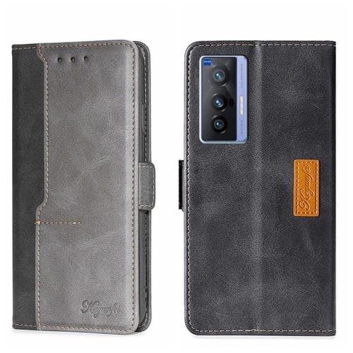 Para la Caja de Teléfono de Cuero de Hebilla Lateral de Color Vivo X70 de Contraste (Negro + Gris)