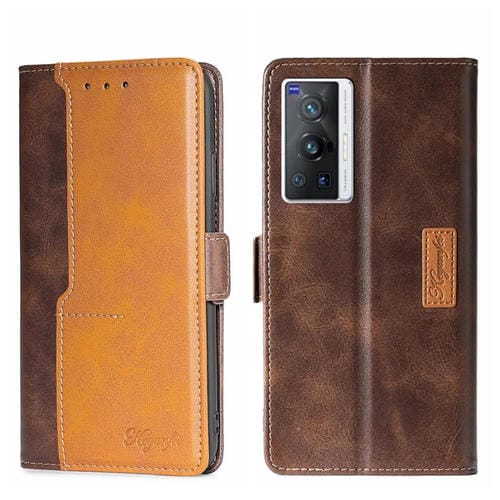 Para la Caja de Teléfono de Cuero de Hebilla Lateral de Color Vivo X70 Pro Contraste (Marrón Oscuro + Dorado)