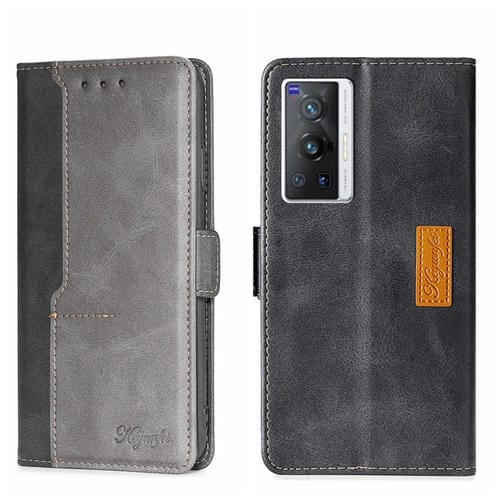 Para la Caja de Teléfono de Cuero de Hebilla Lateral de Color Vivo X70 Pro (Negro + Gris)