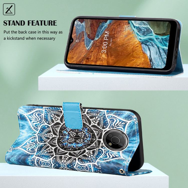 Funda de Cuero para Nokia G300 con Dibujo Mandala Submarina (Azul)