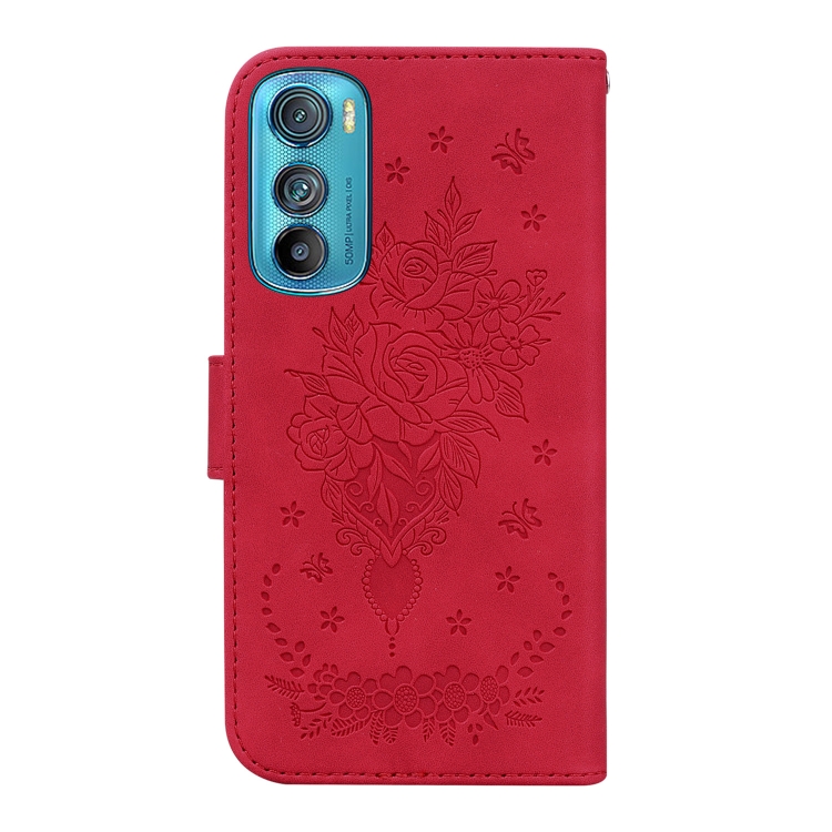 Para la caja de teléfono de cuero en relieve de Motorola Edge 30 Butterfly Rose (rojo)