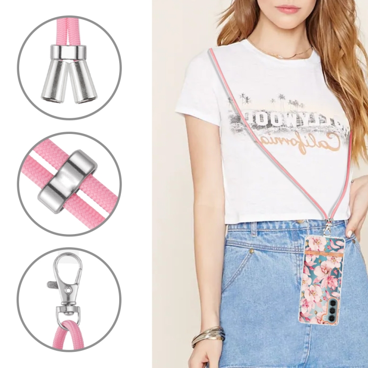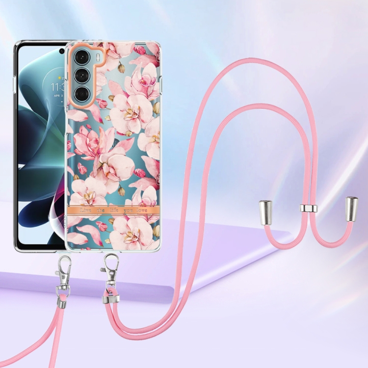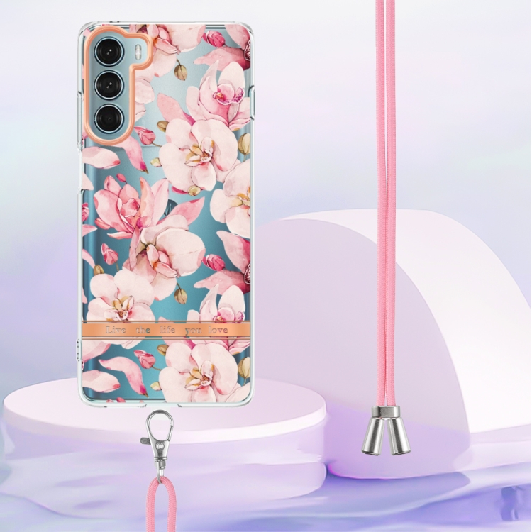 Para la caja de teléfono TPU de la serie Motorola Moto G200 Flowers con Lanyard (Pink Gardenia)