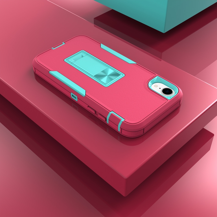 Caja teléfono con Soporte Magnético para iPhone Xr (Rosa Roja + Azul-Verde)
