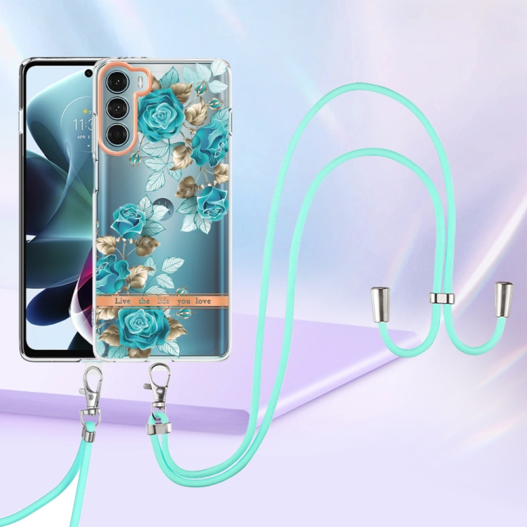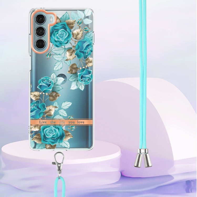 Para la caja TPU de la serie Motorola Moto G200 Flowers con Lanyard (Blue Rose)
