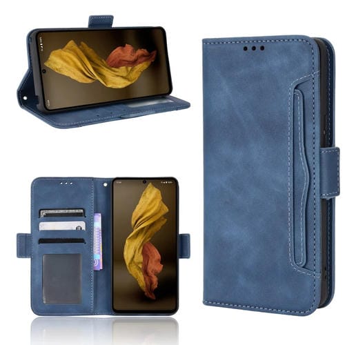 Funda de Cuero para Teléfono R7 con Ranuras de Tarjeta y Textura de Ternero (Azul)