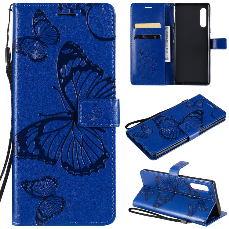 Funda de Cuero para LG G9 con Tapa Horizontal, Patrón Mariposa 3D, Soporte, Ranura para Tarjeta, Billetera y Cordón (Azul)