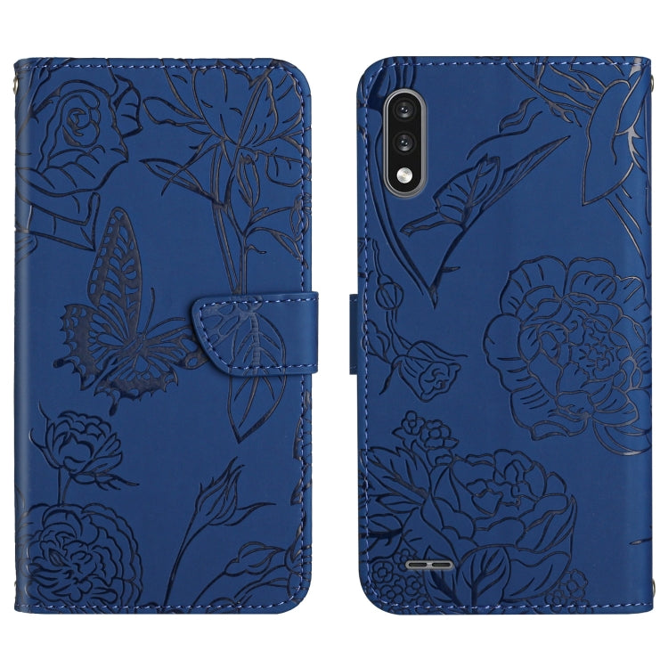 Funda de Cuero en Relieve para LG K22 con Diseño de Mariposa (Azul)