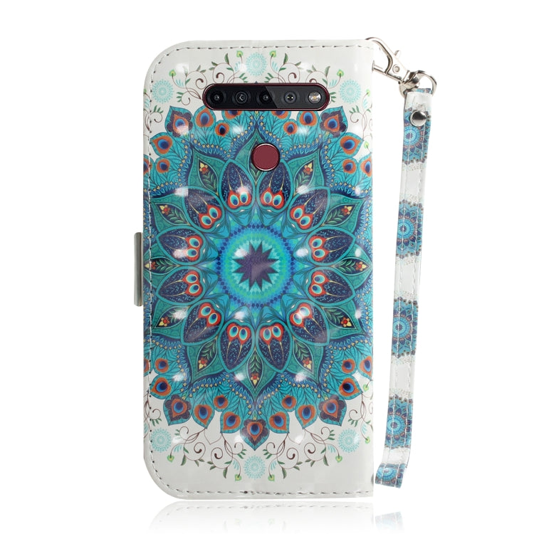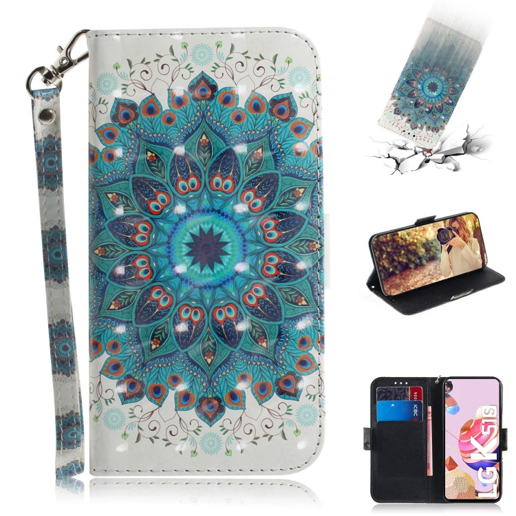 Funda de Cuero Abatible Horizontal para LG K41S K51S con Soporte, Ranuras, Billetera y Cordón (Corona de Pavo Real)