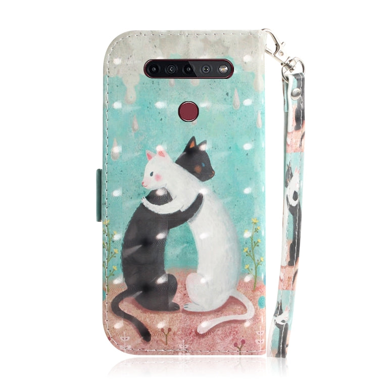 Funda de Cuero Abatible Horizontal para LG K41S K51S con Dibujo 3D Soporte Ranuras Tarjetas Billetera Cordón (Gato Blanco y Negro)