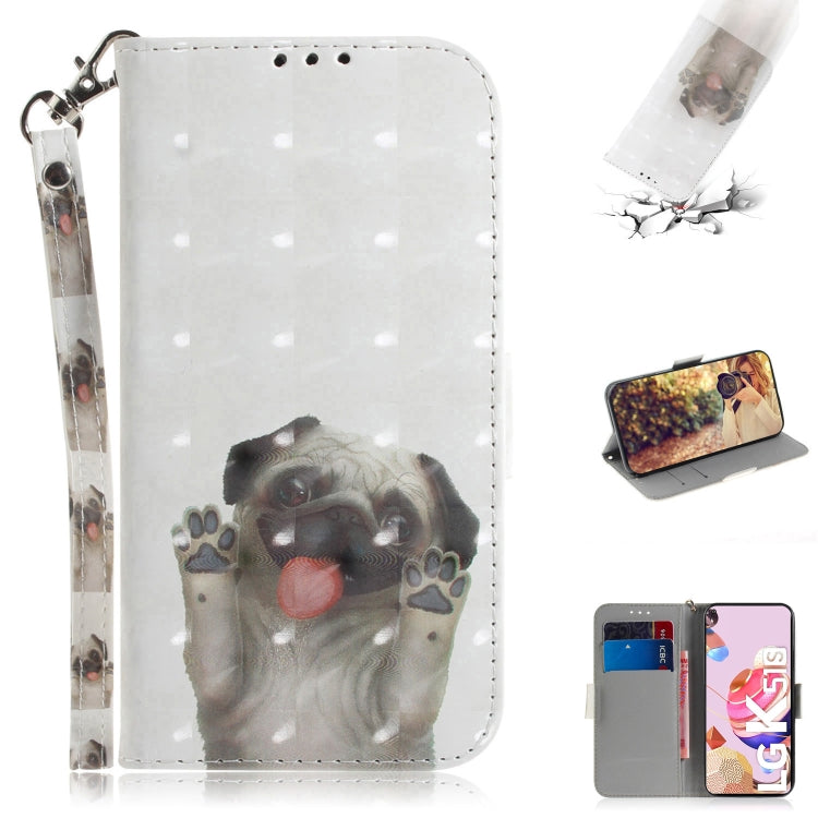 Funda de Cuero Abatible Horizontal para LG K41S K51S con Dibujo 3D Soporte Ranuras Tarjetas Billetera Cordón (Pug)