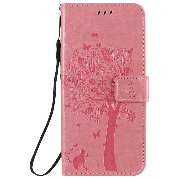 Funda de Cuero para LG K41S K51S con Tapa Horizontal, Patrón Árbol y Gato, Soporte, Ranuras y Cordón (Rosa)