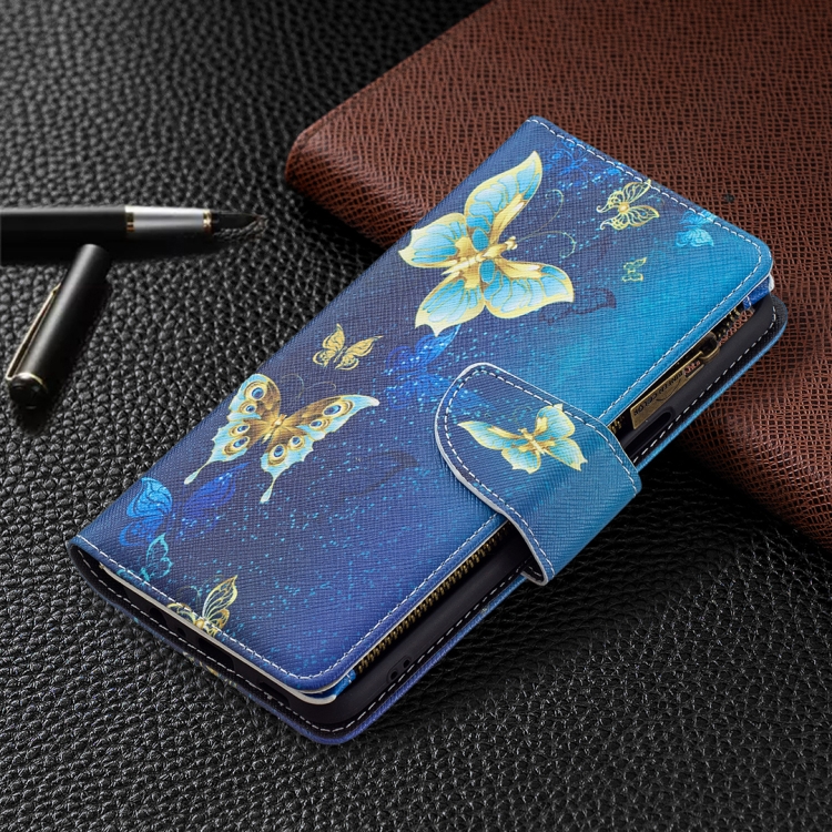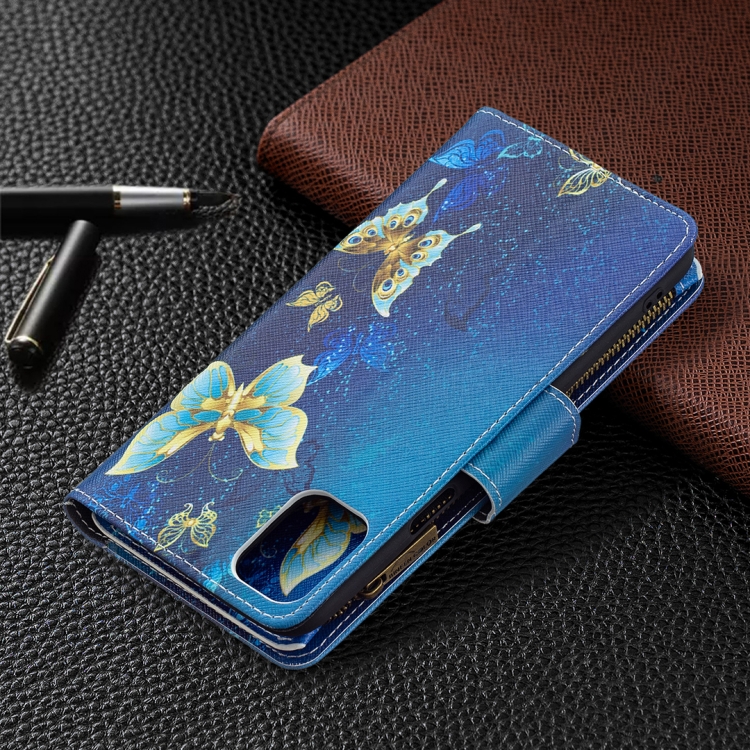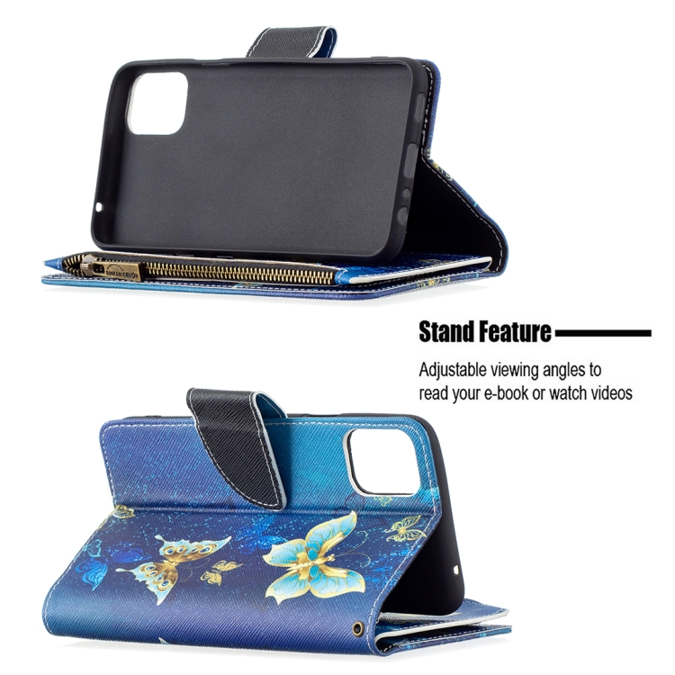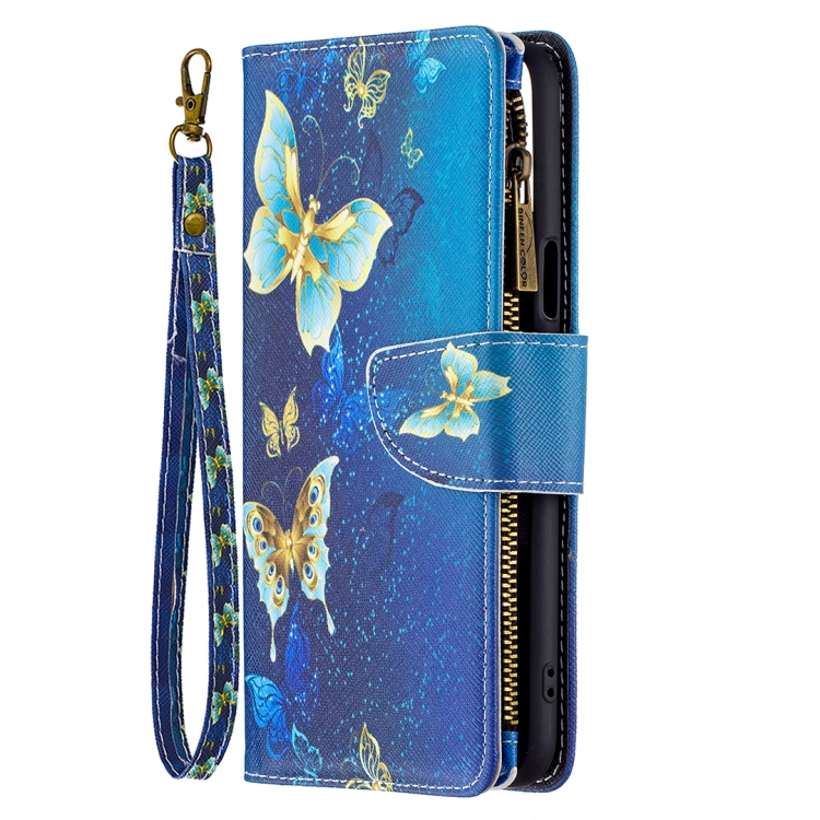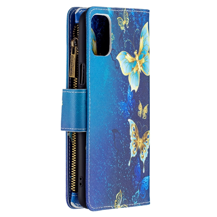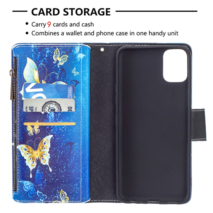 Funda para LG K42 con Cremallera, Soporte, Billetera y Tragamonedas (Mariposa de Oro)