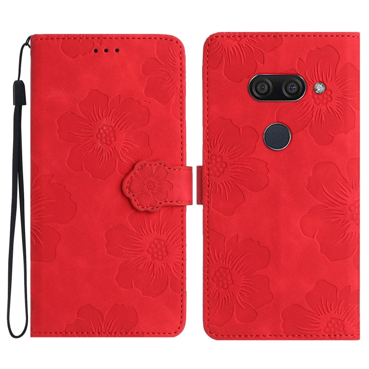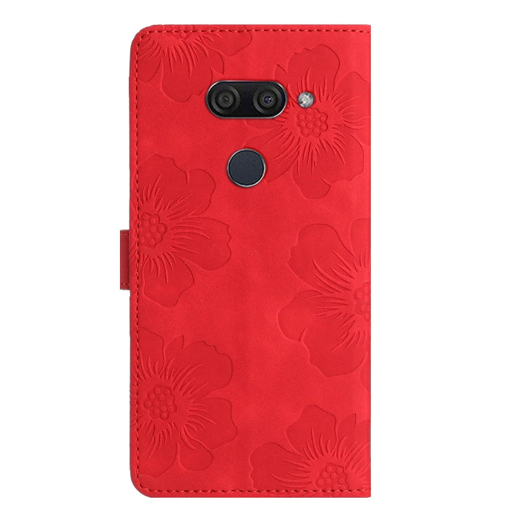 Funda de Cuero para LG K50 con Estampado de Flores en Relieve (Rojo)
