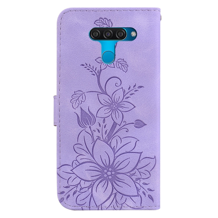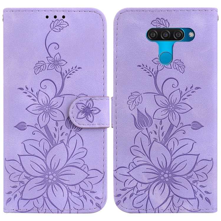 Funda de Cuero con Relieve Lily para LG K50 / Q60 (Púrpura)