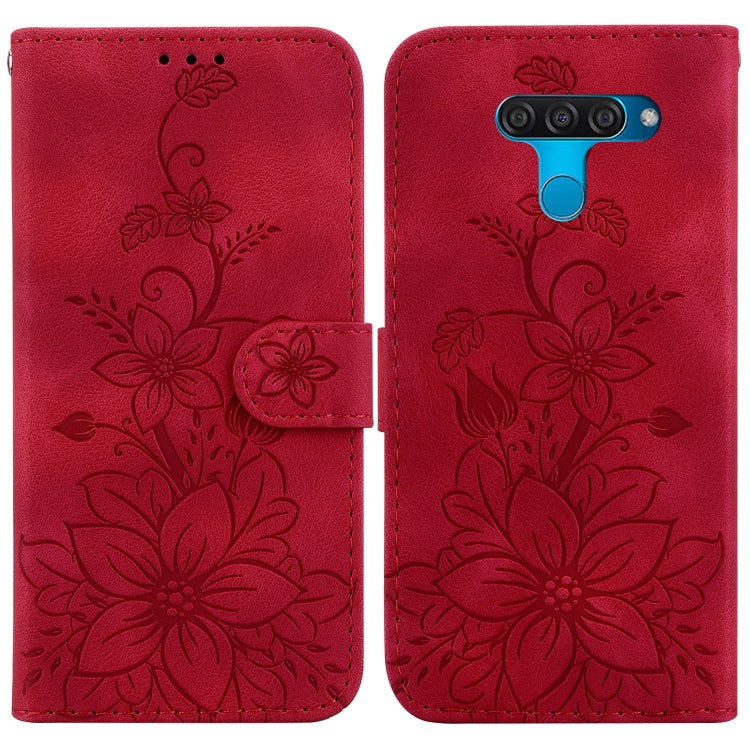 Funda para Teléfono LG K50 / Q60 Cuero con Relieve Lily (Rojo)
