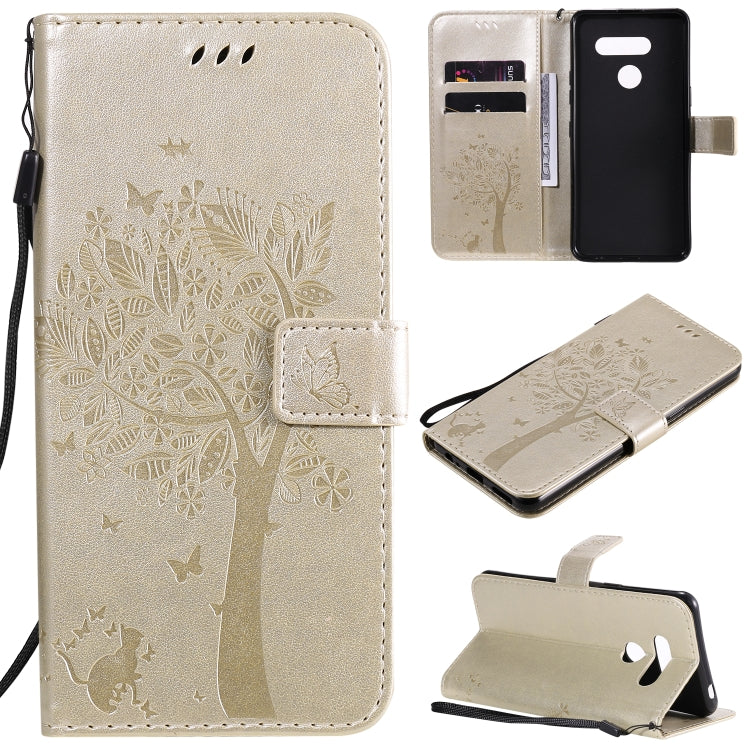 Funda de Cuero para LG K50S con Tapa Horizontal, Soporte, Ranuras para Tarjetas y Cordón (Dorado)