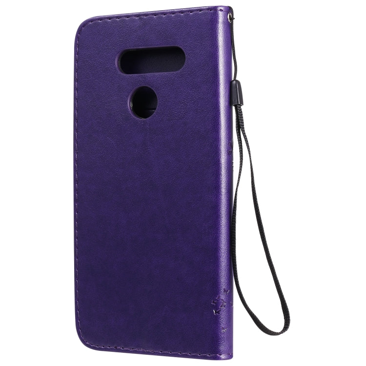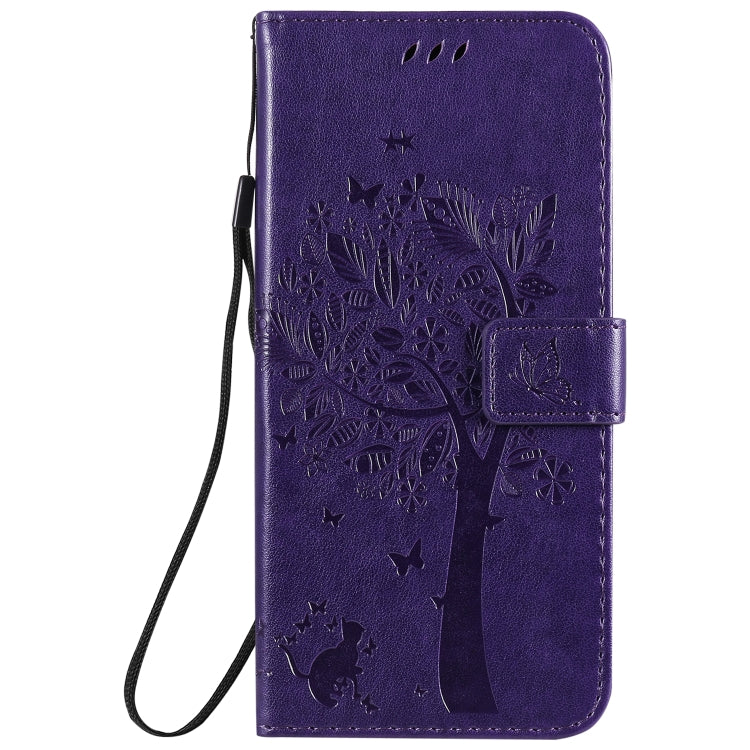 Funda de Cuero para LG K50S con Tapa Horizontal, Patrón Árbol y Gato, Soporte, Ranuras para Tarjetas y Billetera (Púrpura)