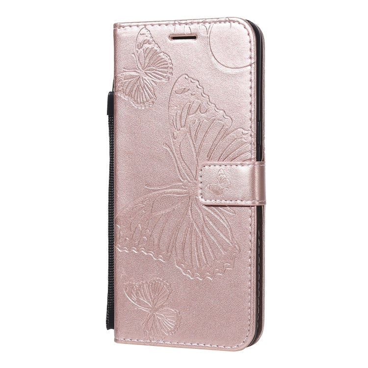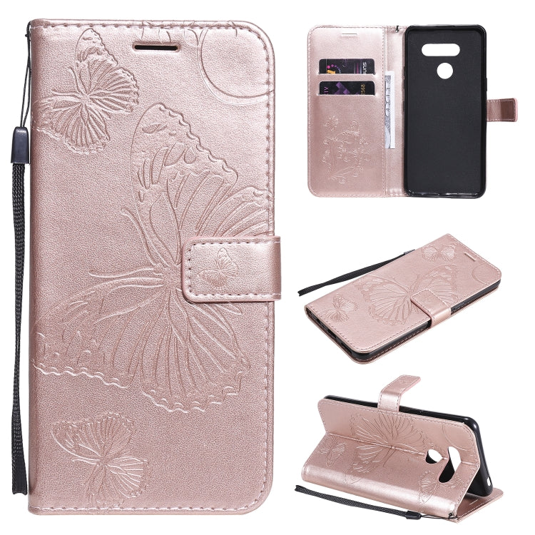 Funda de Cuero para LG K50S con Tapa Horizontal, Patrón Mariposa 3D, Soporte, Ranura Tarjeta, Billetera y Cordón (Oro Rosa)