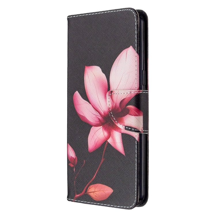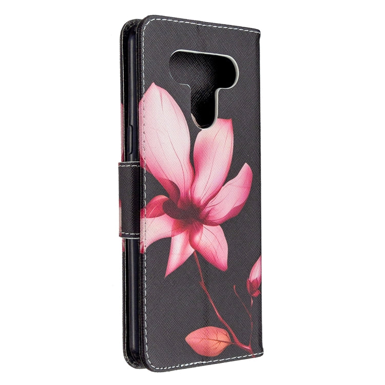 Estuche de Cuero Abatible Horizontal para LG K51 con Soporte, Ranuras para Tarjetas y Billetera (Lotus)