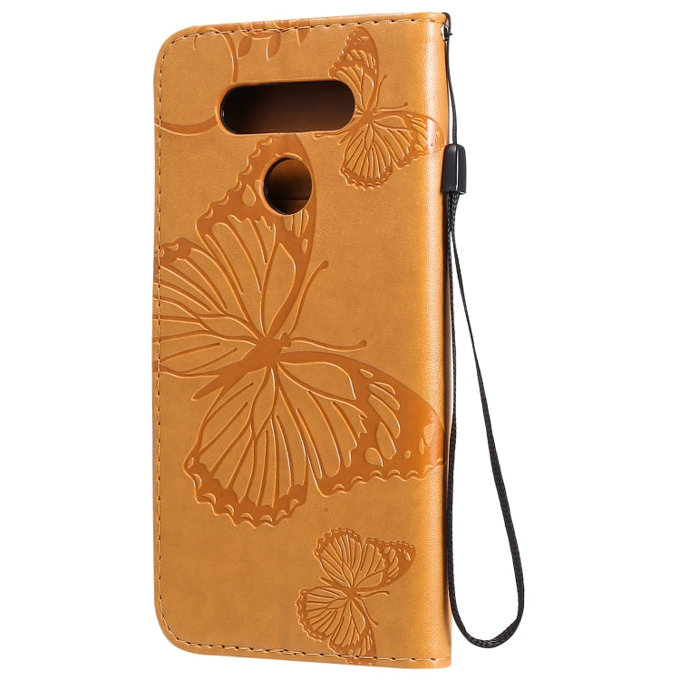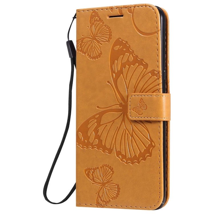 Funda de Cuero para LG K51 con Tapa Horizontal, Patrón Mariposa 3D, Soporte, Ranura para Tarjeta y Cordón (Amarillo)