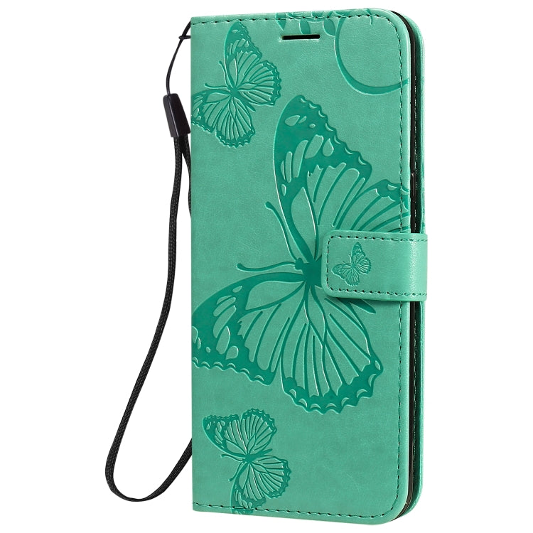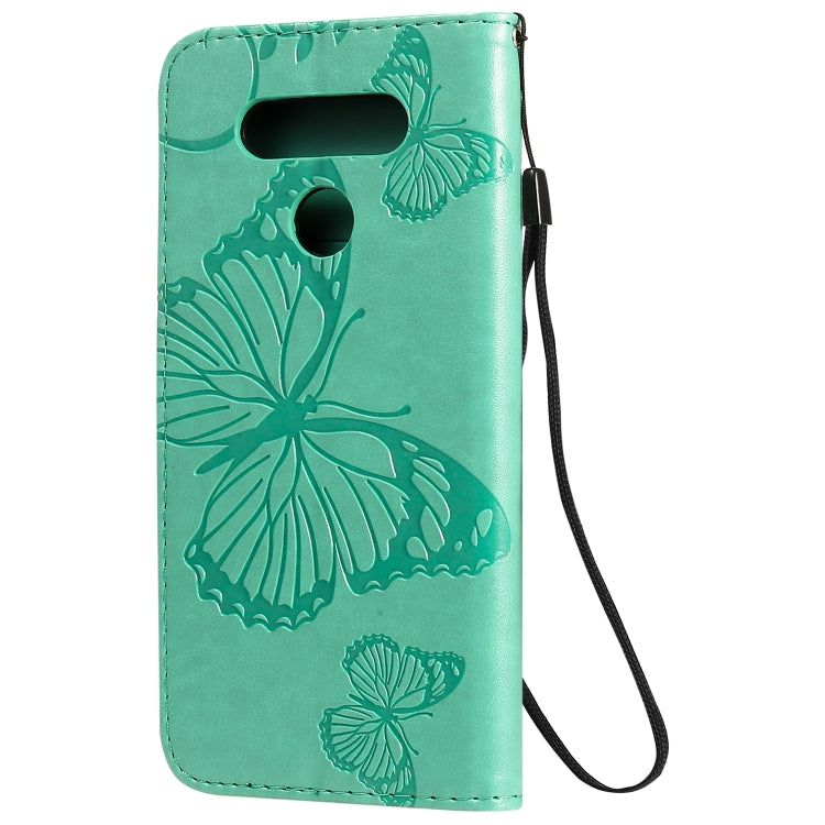 Funda de Cuero para LG K51 con Tapa Horizontal, Patrón Mariposa 3D, Soporte, Ranura para Tarjeta y Cordón (Verde)